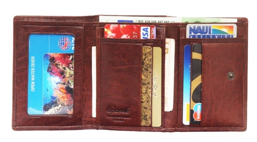 Diplomat предлагает купить стильный маленький женский кожаный кошелек SK-004R, натуральная «Vegetable» обработанная кожа оттенка красного дерева, с выраженным текстурным рисунком в интернет магазине кожгалантереи на официальном сайте Дипломат Швейцария в Москве. Дизайнеры сделали отделение для купюр +место четырём пластиковым карточкам +пять дополнительных карманов +прозрачное место для фото +внешняя монетница на замке – рамке.
