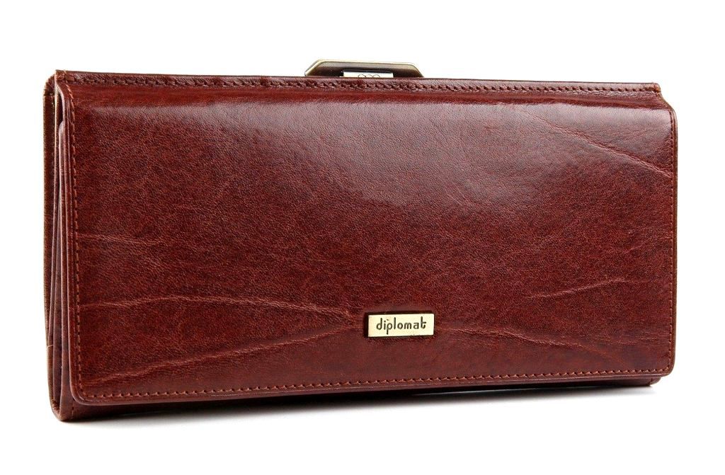 Diplomat предлагает купить большой стильный женский кошелёк, цвета красного дерева, из кожи, натуральной «vegetable» выделки в интернет магазине кожгалантереи на официальном сайте Дипломат Швейцария в Москве. Внутри 3 удобных отделения (одно на молнии; 12 карманов для пластиковых и кредитных карточек; 2 дополнительных; внешнее, на замке - рамке для монет.